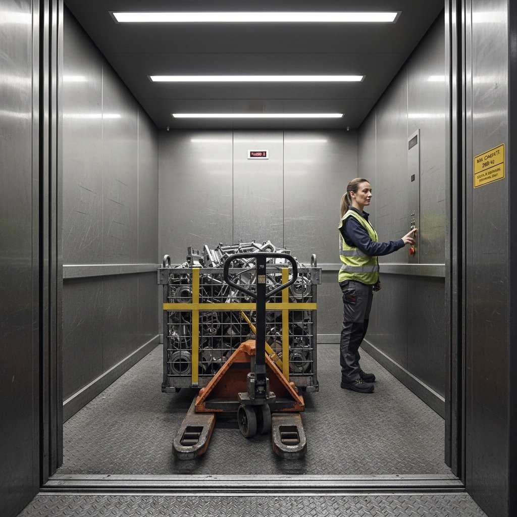 Goods lifts transport goods between floors, usually heavy products. Unlike passenger elevators, they more often have rugged interiors to withstand heavy weights.